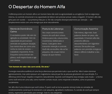 Este é O Manual do Homem Alfa — um guia direto, sem rodeios, criado para o homem que está cansado de ser comum… e decidiu assumir o protagonismo da própria vida.